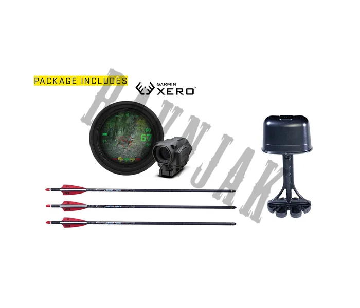 Included AccessoriesGarmin XERO X1i Rangefinding Scope, ACUslide MAXX, 3 CenterPunch HPX Carbon Bolts, Integrated String Stop, Bow Hook, Quiver