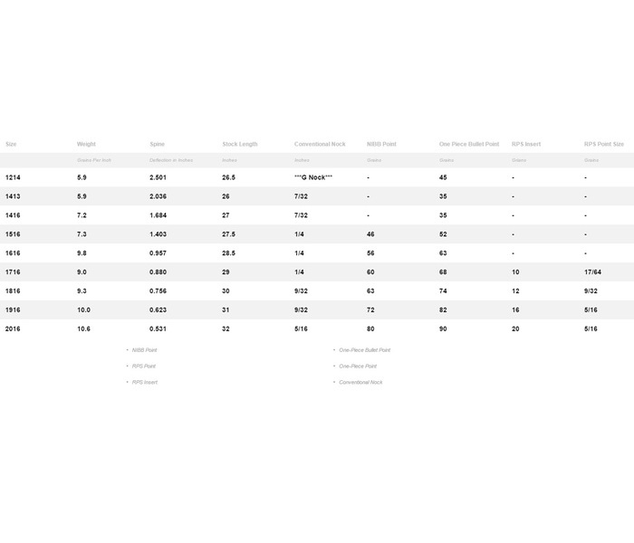 - Available spines make this the perfect arrow for those with lighter poundages and shorter draw lengths.