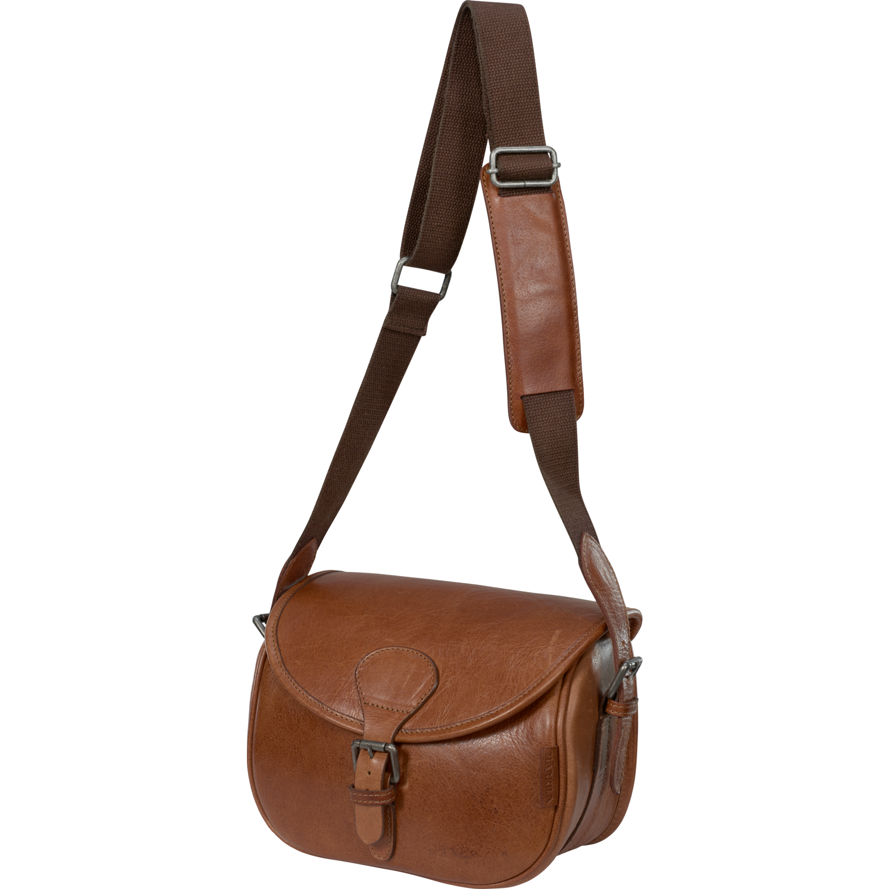 The Retrieve Cartridge Bag is made from hardwearing, full-grain leather, which will acquire a patina and become even more attractive with use. The bag has a canvas carrying strap with a shoulder pad for comfort, as well as a buckle to close the top cover.