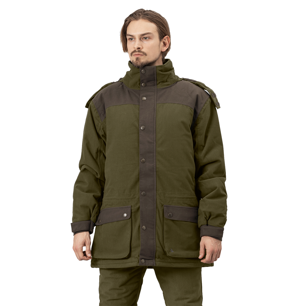 Perfect for the cold months in the hunting tower! Max Warm II is, as the name suggests, a warm hunting jacket. The hood is detachable and the jacket has two large front pockets with integrated cartridge holder and two welt pockets to keep your hands warm. It is insulated with Thinsulate 3M™ and has a Seetex® membrane to keep you warm and dry, even on cold and wet hunting days.