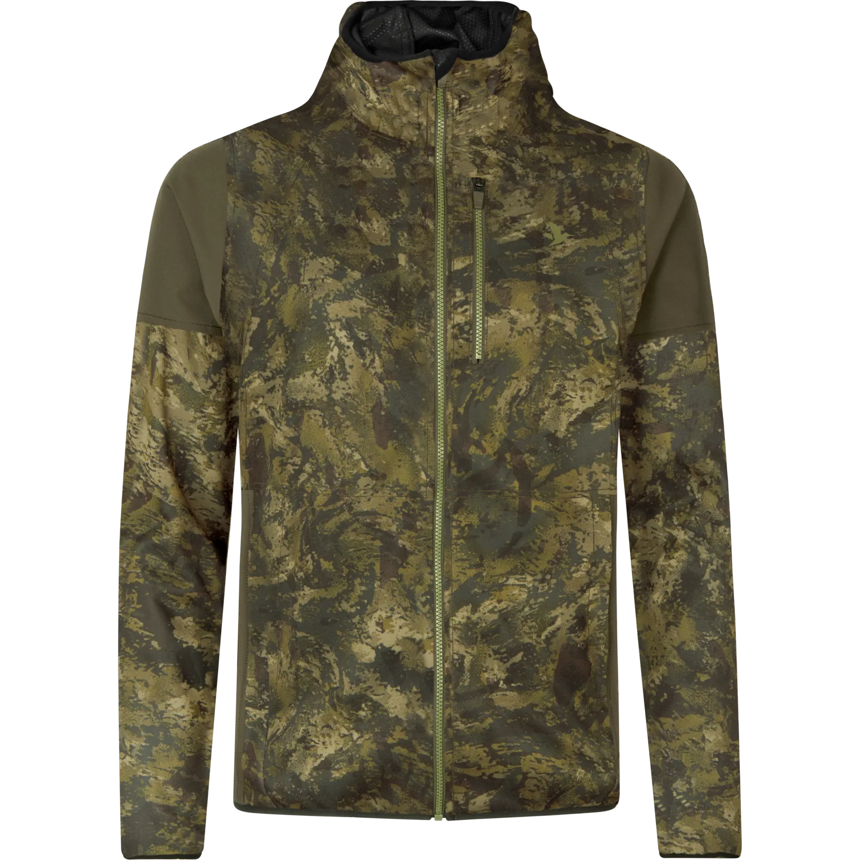 A stylish windbeater with camo print. It has integrated hood and Seetex membrane for excellent protection from a cold wind. There are two front pockets and a zipped vertical chest pocket. Made from a stretch fabric for good ease of movement.