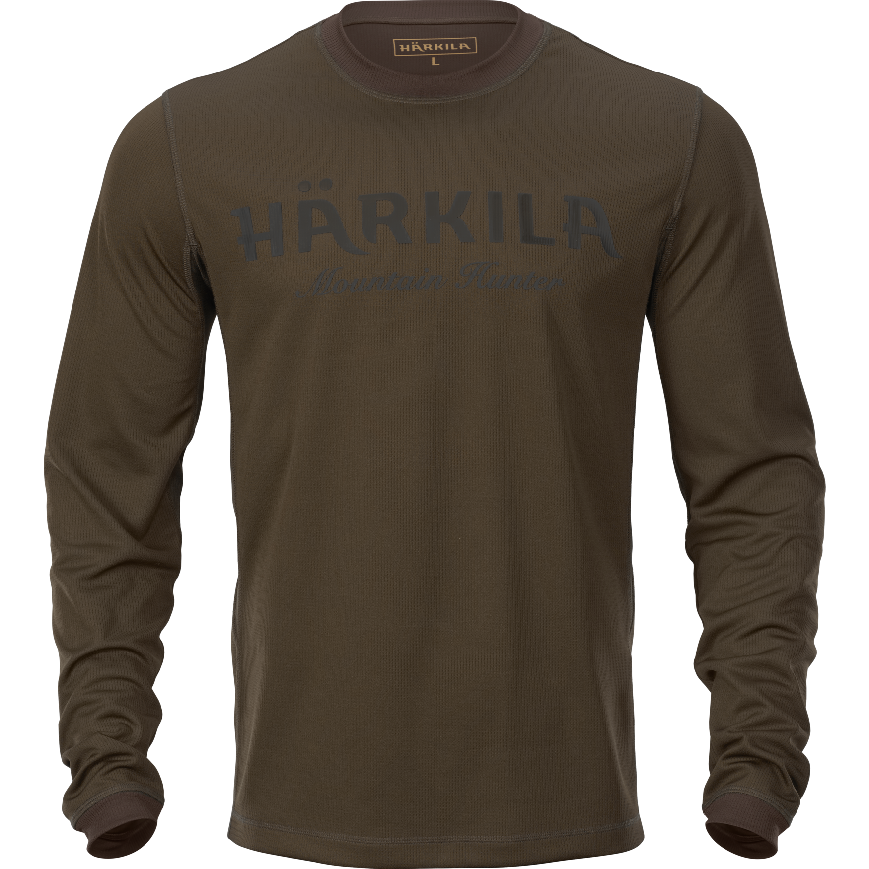 The Mountain Hunter L/S T-shirt is made from a breathable, very quick-drying, synthetic, stretch fabric, which is Polygiene®-treated, to counteract odour and bacterial growth. The T-shirt has a Härkila logo on the chest.